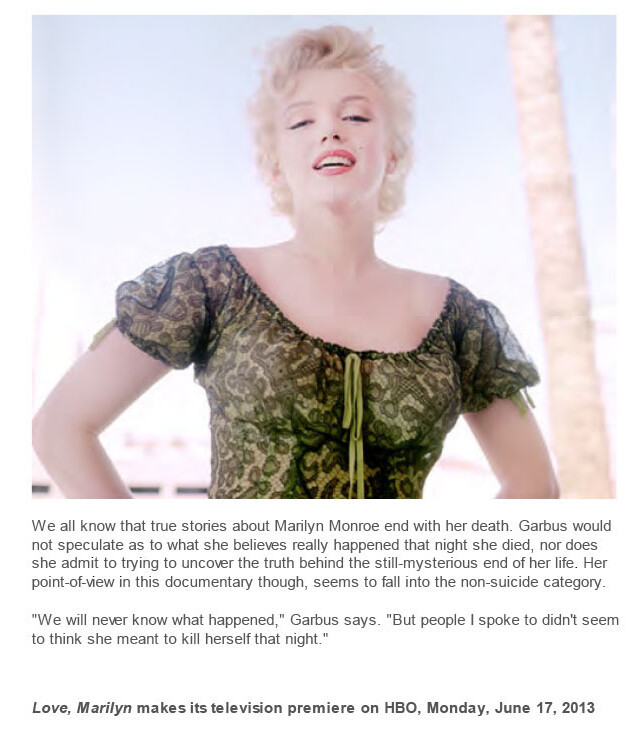 Love, Marilyn makes its television premiere on HBO, Monday, June 17, 2013